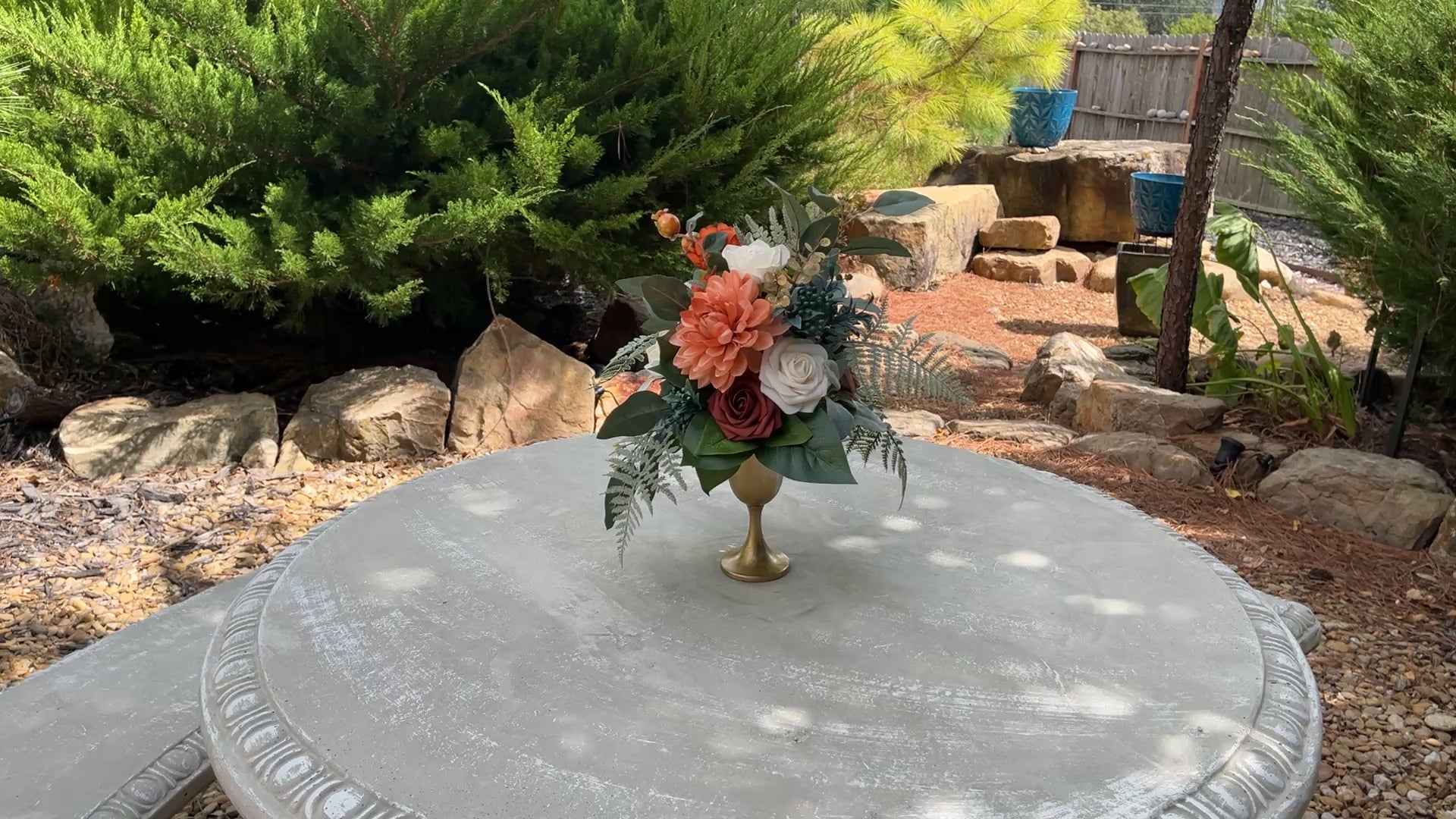 Compact in scale but rich in detail, Jazzy is perfect for accent tables, desks, or smaller dining spaces where a pop of color and character can shine. Its mix of warm and cool tones creates harmony, while the gold vessel adds a touch of sophistication.