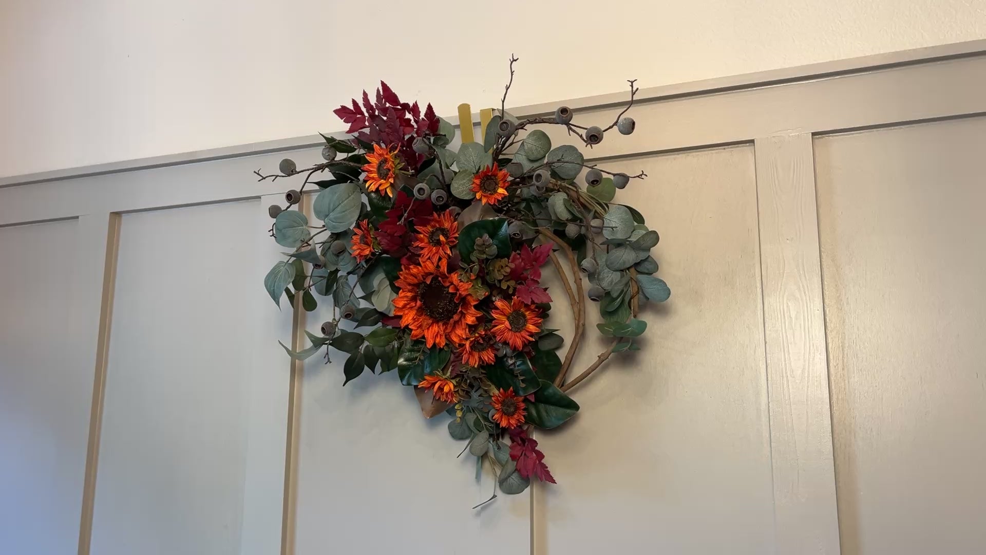 Shaped with a graceful curve, September’s Sweetheart makes a striking seasonal accent—perfect for hanging on a door, placing above a mantel, or displaying in a hallway where autumn’s welcome can be felt. Its balance of bold color and natural texture offers both charm and sophistication.